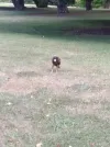 On closer inspection the bold bird was trying to take off with his ball. Jealously guarding its find, the hawk finally gave up after failing to either crack open the pesky object or get a firm enough grip of the ball in its talons.